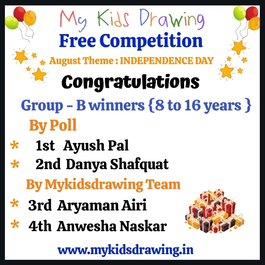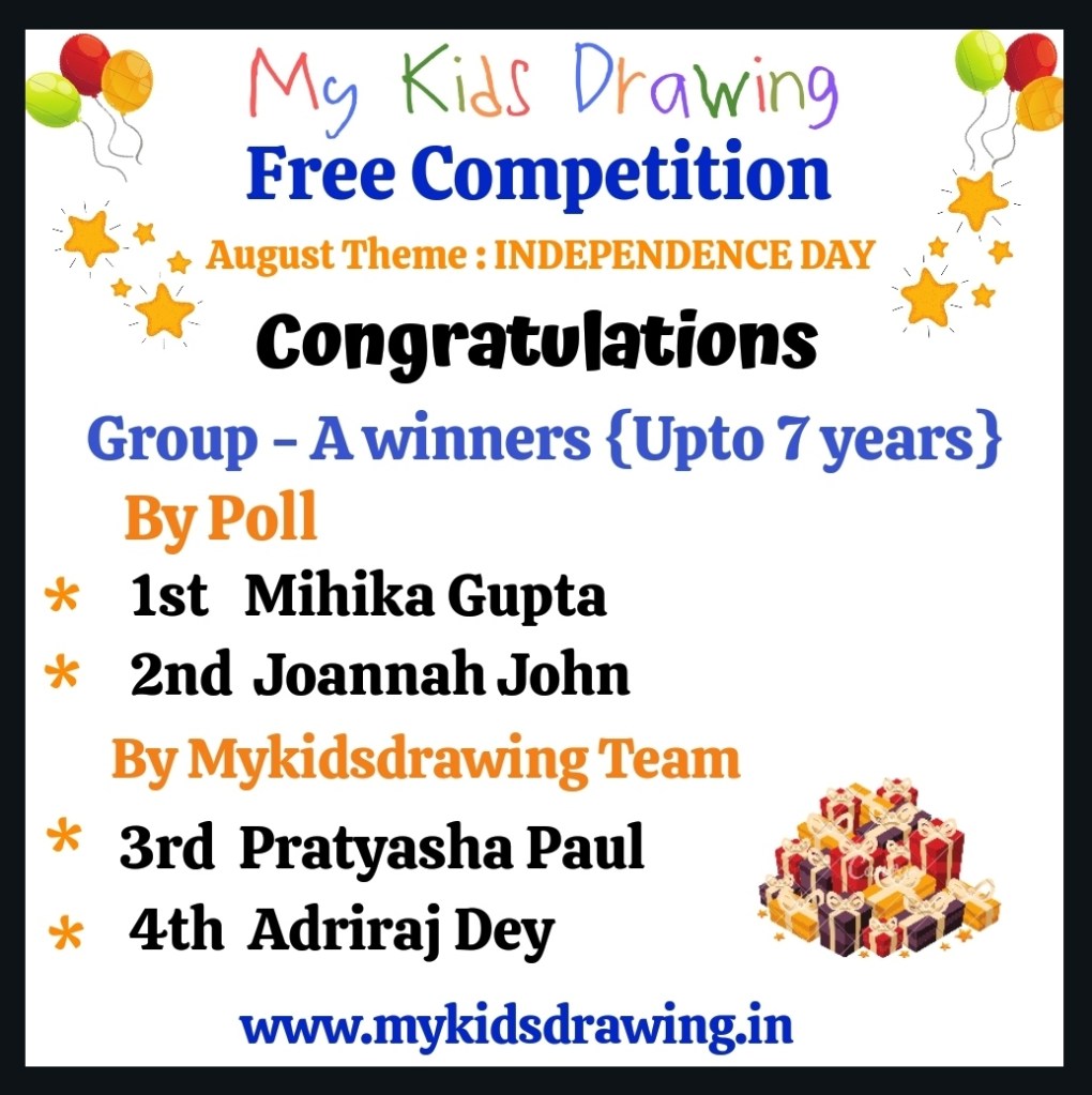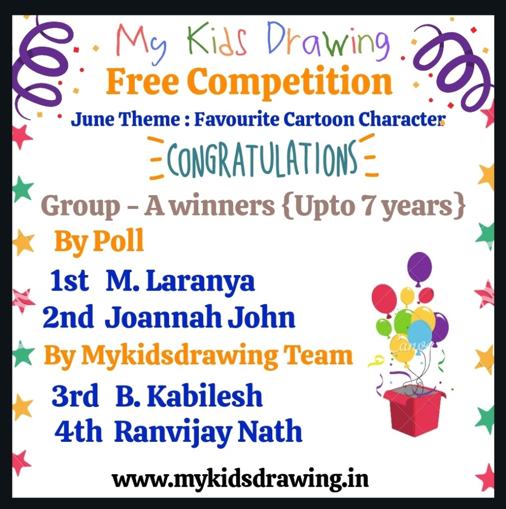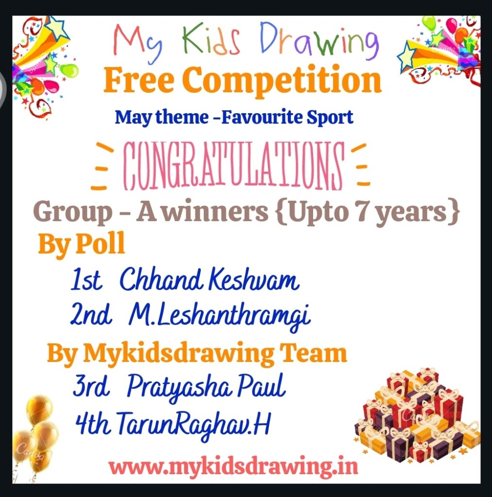 2 Winners Will be picked by Public Votes & 2 more Winners Will be Picked by MyKidsDrawing Art Team from Group A & B.